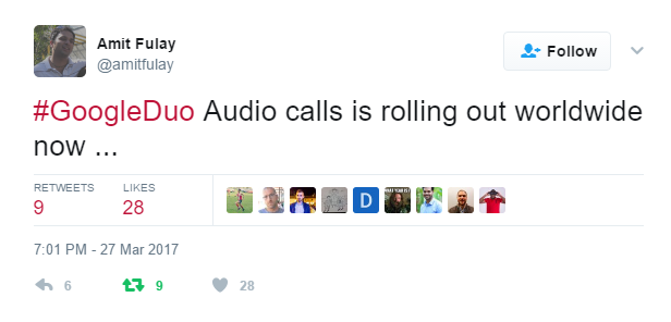 7 months ago when Duo launched, Amit Fulay took to Google+ to confirm that Duo would be gaining audio calling support at some point. That day has finally come.