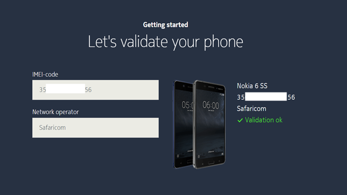 5. Scroll down to validate your Nokia 6 using its IMEI. Don’t worry, there are on-screen instructions on how to go about this in case you don’t know where to find it. Be sure to key in the carrier (the mobile network operator on whose network the Nokia 6 is using) since it is necessary for the validation.