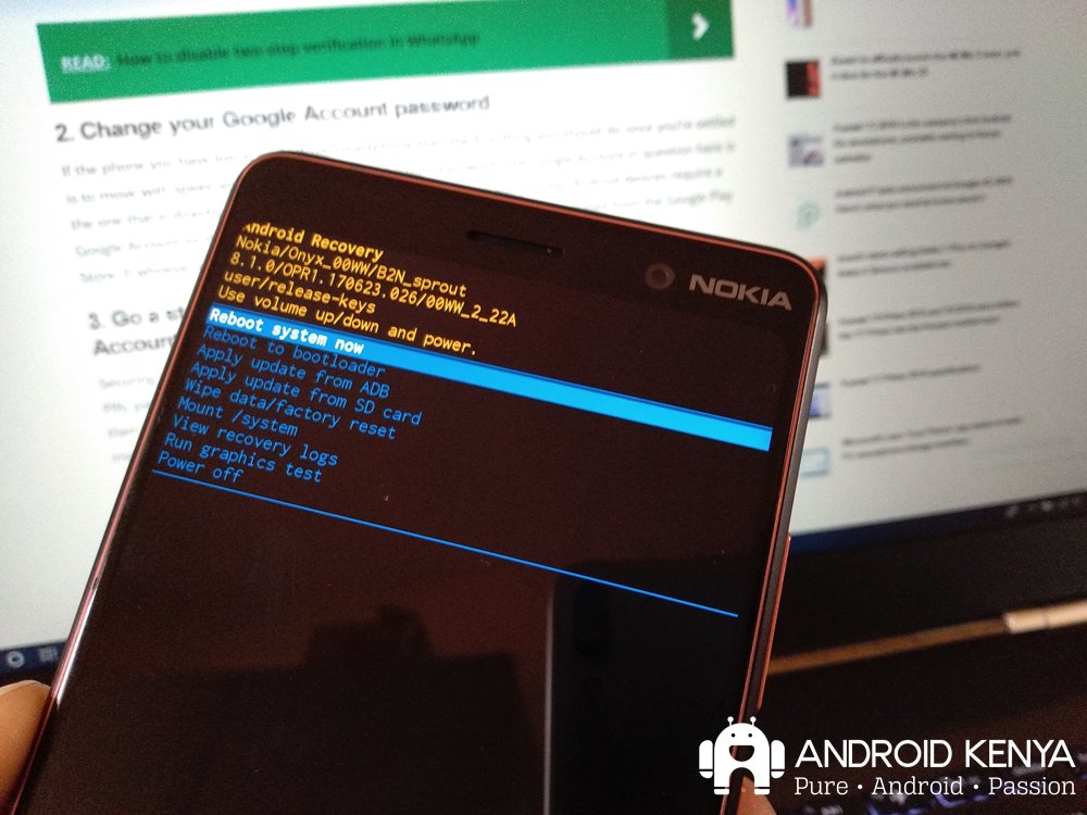 HMD Global recommends that you wipe data from your device while in recovery mode since a simple factory reset won’t get the desired outcome. I did not do that and, so far so good. Maybe it is a step that you may want to include but, according to me, it is largely unnecessary. You can still do the data wipe after installing Android P in case you run into some issues like apps constantly crashing and whatnot. Just remember to back up your data before doing so.