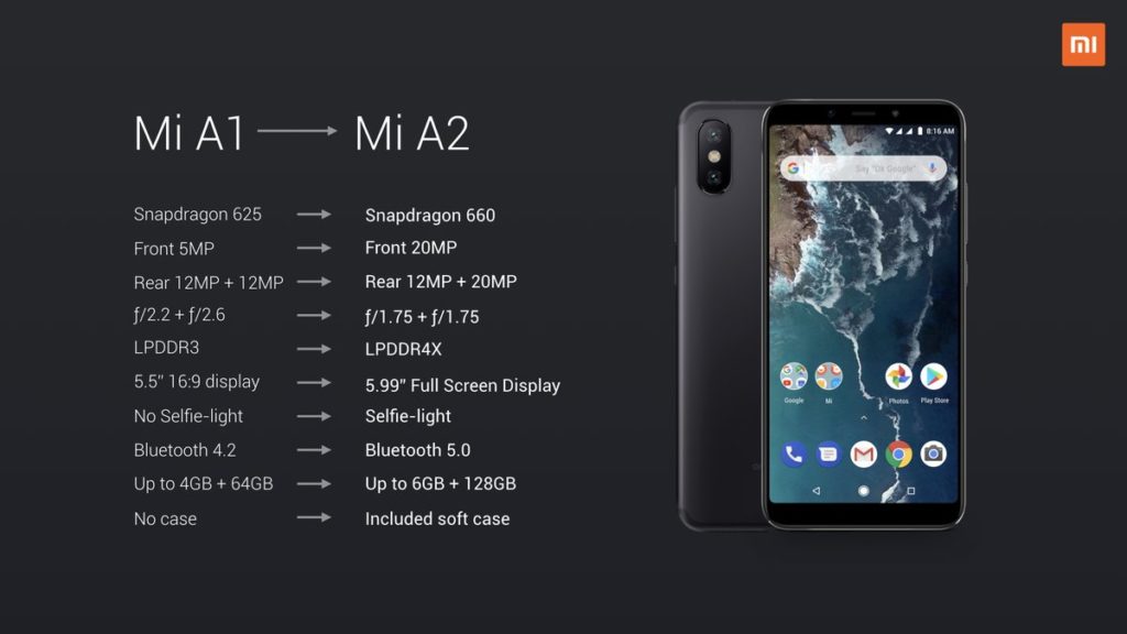Users can expect to choose between various memory and storage options just like they did with the Mi A1 last year. There will be one difference, though: the availability of a 6GB RAM + 128GB onboard storage variant.
