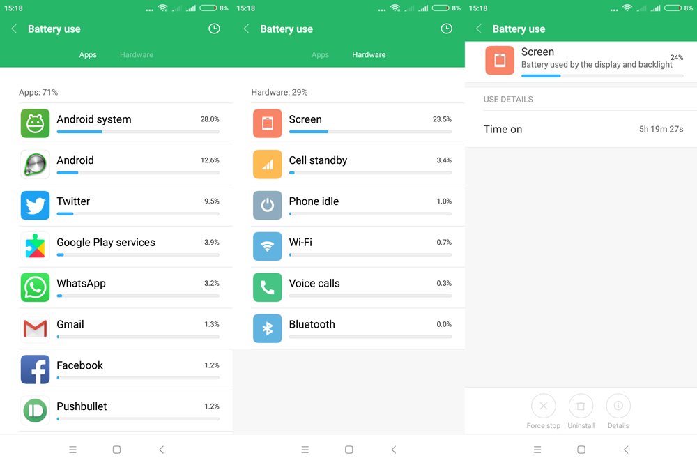 I am particularly a fan of how MIUI displays app menus in the settings app as it provides easy access to the actions that I always want to take – clear an app’s data and cache, force stop it or delete/uninstall it altogether.