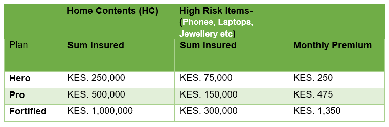 The home insurance cover is available to subscribers of both the standard Home Fibre subscription packages as well as the Internet Plus plans (renamed to Home Fibre Plus today) announced in September which add voice minutes and unlimited SMS to the packages for an extra Kshs 500-1,000. The Platinum Plus package has been renamed Diamond Plus, in the new changes while everything else, including the pricing, remains the same.