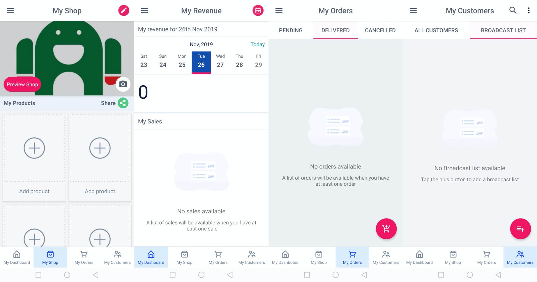 Sellers also have the ability to communicate with their customers right from the app. No need to copy numbers then fire up a messaging application in order to be able to do so. The message is then delivered to the customer as a text message. Sellers can also send broadcasts to customers.