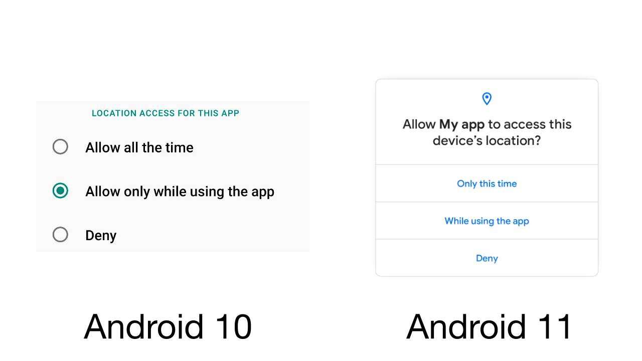 A new addition to the location permissions introduced in Android 10 is the ability for users to allow an app to access their location information only at that given time. This, however, comes at an expense: the “Allow all the time” option has been removed and the process to get it, for apps that need it, is as described above.