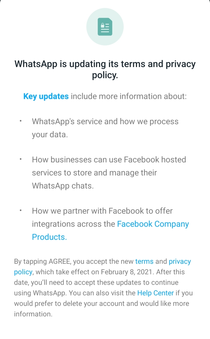 As can be seen above, the new privacy policy was set to take effect on February 8th, 2021.