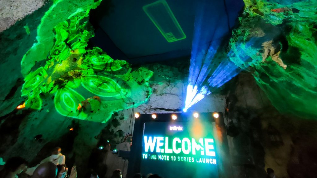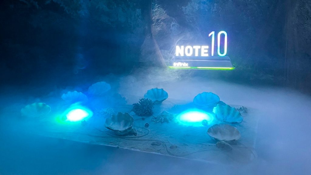 The entire cave was beautifully illuminated with flashy lights and laser light mapping that brilliantly evoked an outer space futuristic experience. The big unveil was not just all fireworks, instead, it was carefully set in one of the interlinking chambers, with the Note 10 display phones carefully sitting on giant seashells surrounded by mystical smoke.