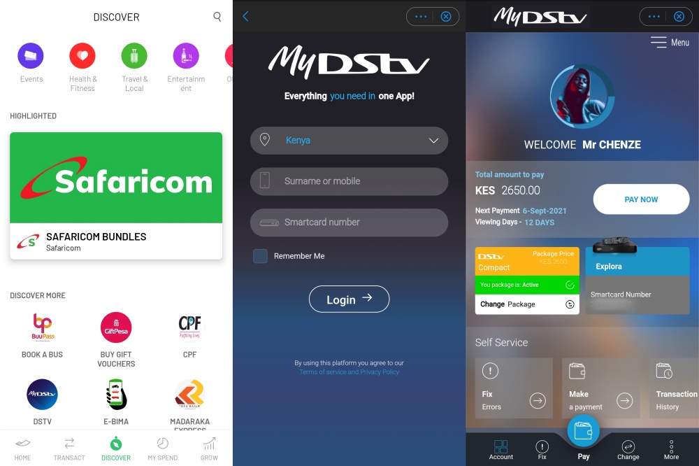 These mini-apps, as Safaricom was calling them at launch, were to be available on both the consumer-centred version of the M-Pesa application as well as the M-Pesa for Business app. The latter didn’t have them at launch. While we cannot confirm if the business app has finally received mini-apps as promised, we have been enjoying the ones on the consumer app for since then and now there’s a new addition: DStv.