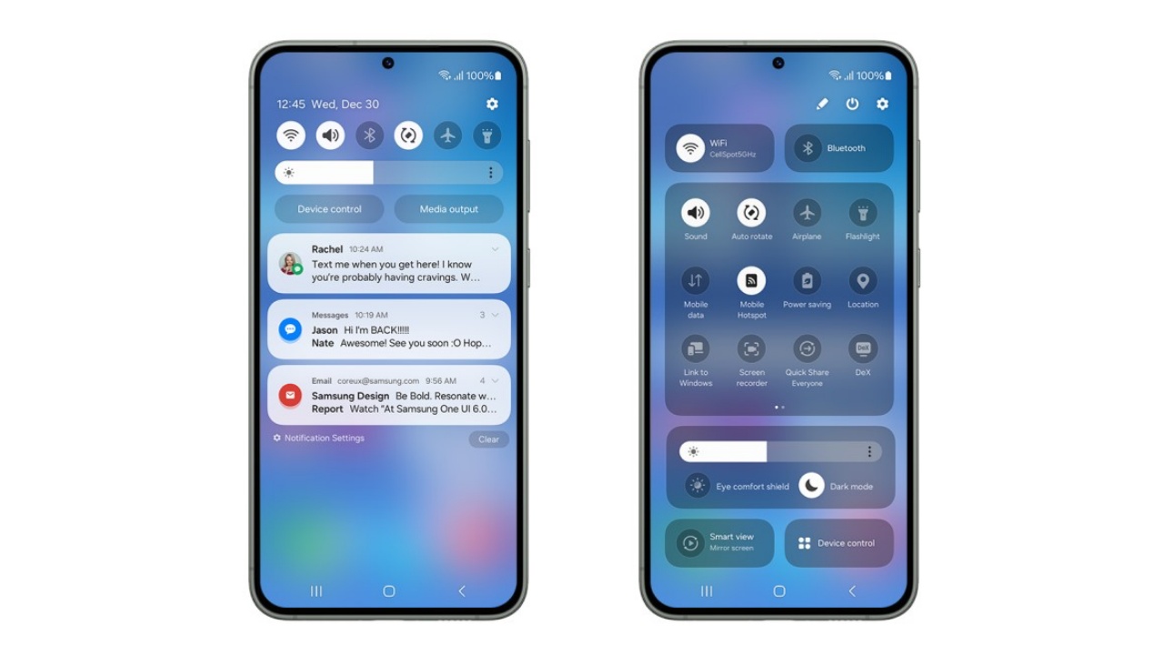“One UI 6 makes a compelling first impression with its beautiful simplicity. Many elements have been tweaked to create a more modern look and feel, such as the impactful new default font and the new emojis on Samsung Keyboard. The Quick Panel has been revamped with an updated layout that makes it effortless for users to access their most used features. It is easier than ever to adjust screen visibility on the go as the brightness control bar is available by default in the compact Quick Panel. Furthermore, there is also a new instant access option to the full Quick Panel, providing faster access to settings with a single downward swipe at the upper right corner of the screen.”