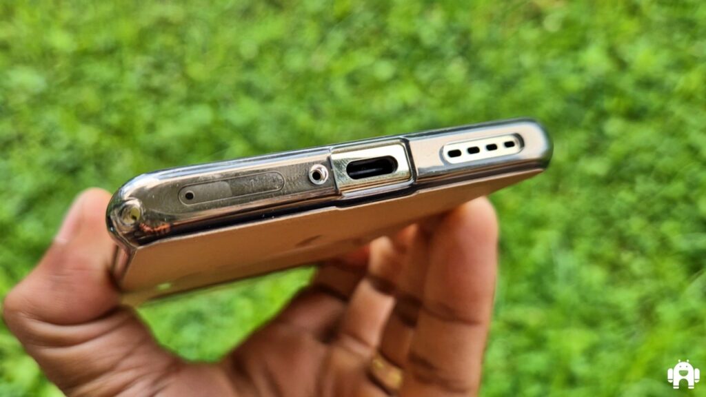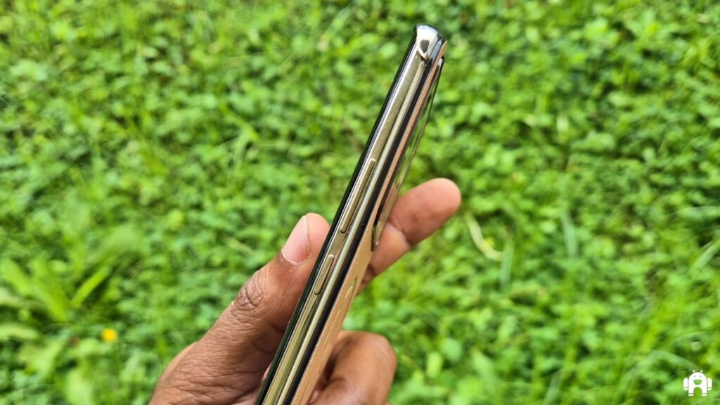 It’s a large device by all means with its curvy and dotting 6.78-inch AMOLED panel and it does feel large but its thinness and overall good finish make it slide easily into your palm when you’re using it. It even feels better when you slap the cover that’s included in the box which has a soft touch material that you can find on other colour options on the device. The Titan Gold colour model that I have been reviewing, it has this nice shimmery back which makes handling even better.